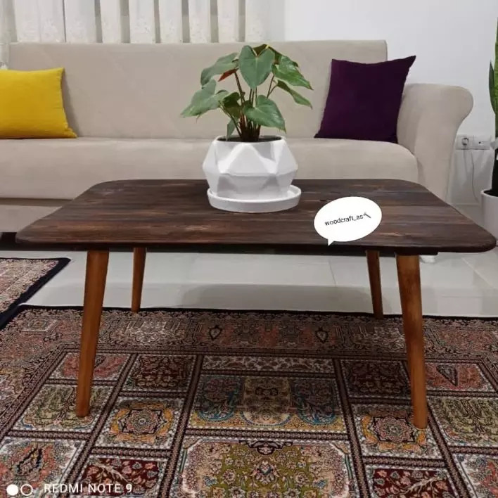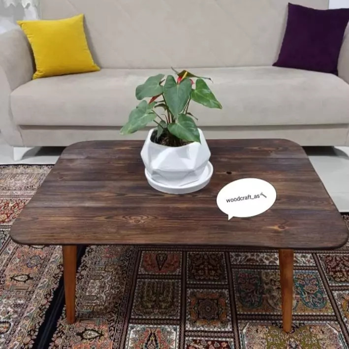 میز وسط سوخته کاری شده رنگ طبیعی چوب پایه قابل جدا سازی میباشد جهت حمل راحت تر