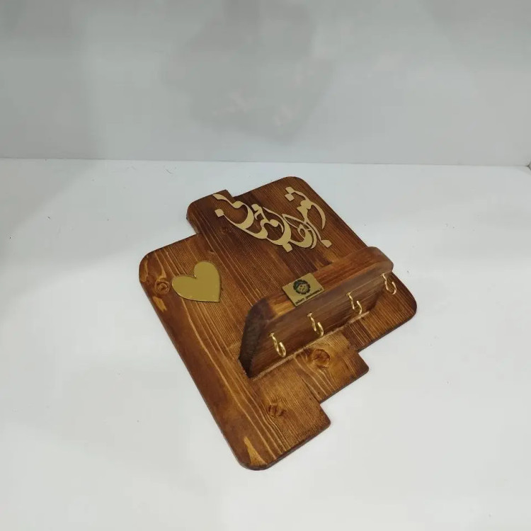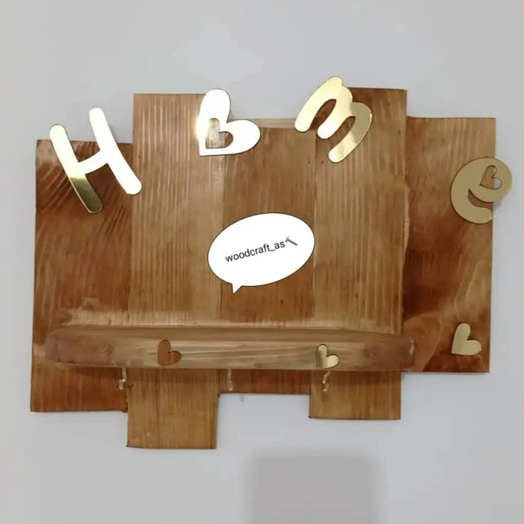 جا کلیدی شلف دار چوبی دیواری ساخته شده از تمام چوب طبیعی نراد با بهترین کیفیت با پوشش رنگ و جلا