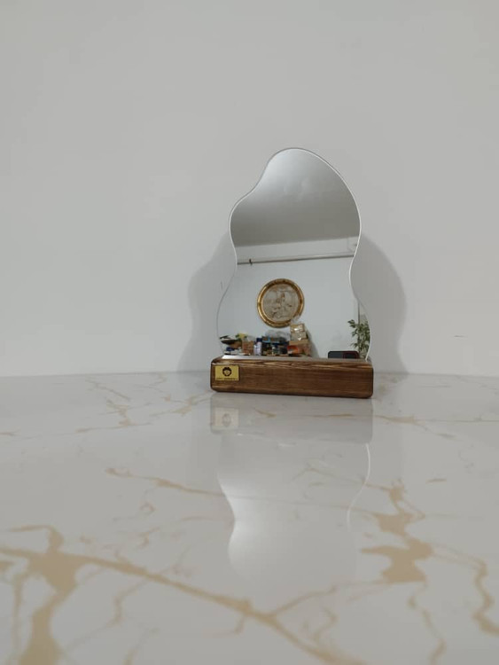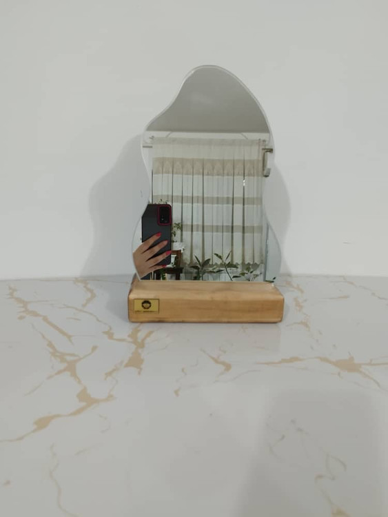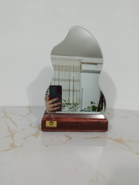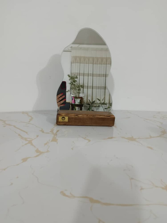آینه رومیزی دفرمه همراه زیره چوبی آینه درجه ۱ لبه گرد بدون کوچکترین تیزی صاف و صیقلی میباشد