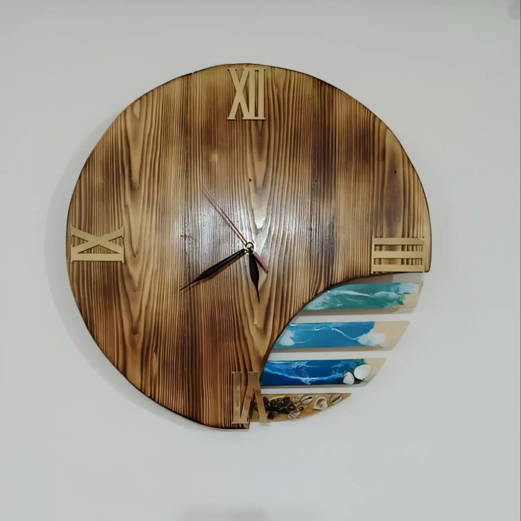 ساعت چوبی و رزین ساخته شده از چوب نراد (روسی) درجه ۱ ماندگاری بالا و موتور آرامگرد و بیصدا
